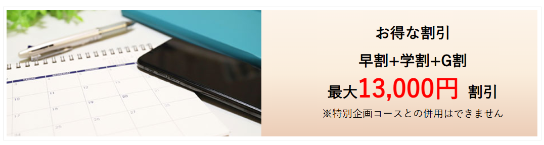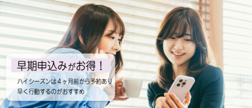 • 早割:早めに申し込むことで割引が適用される場合があります
